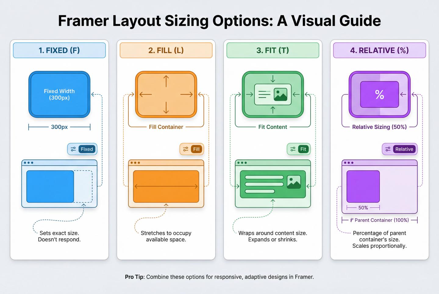 Achieving responsiveness in Framer relies on the synergy of three core features: