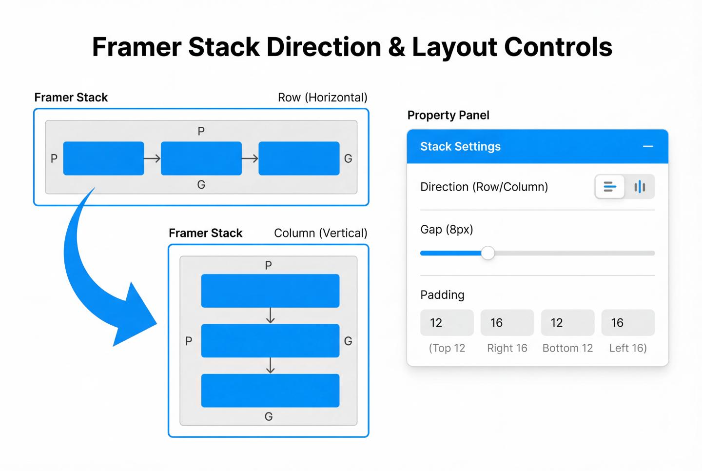 Stack is the core of Framer's responsive design, essentially implementing CSS Flexbox. Without Stack, elements are absolutely positioned and cannot be fluidly arranged.