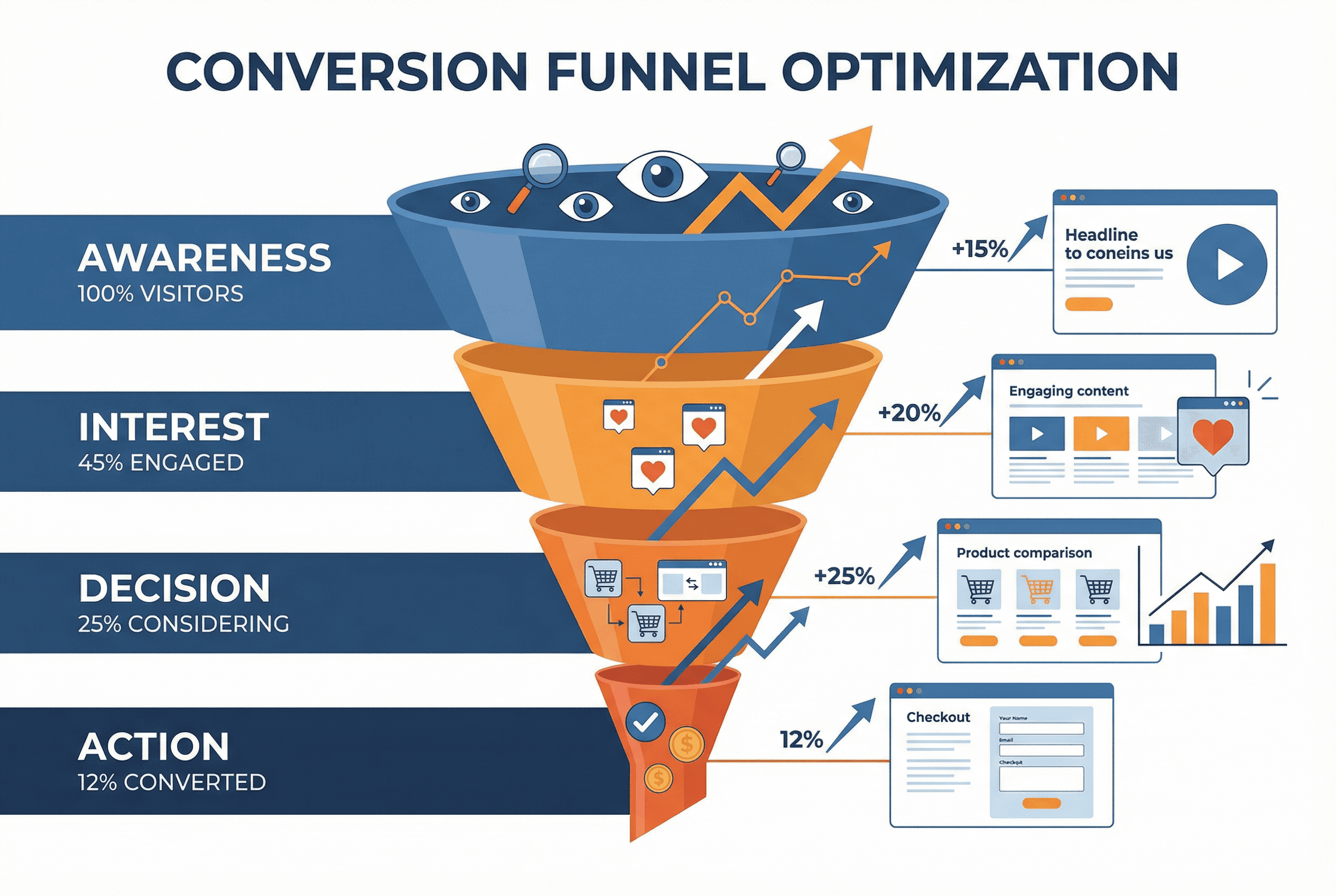 A poorly designed page breaks the conversion funnel at the very first step. It’s like setting up a beautiful storefront but bricking up the front door.